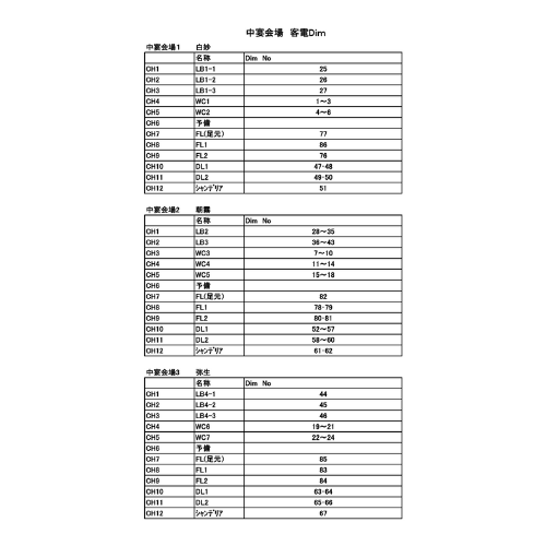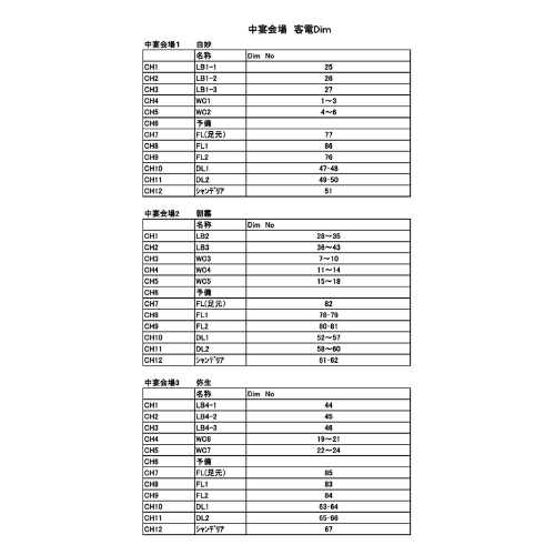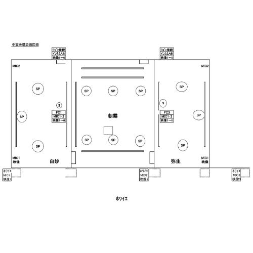 MAIN 各種図面 お部屋のサイズや電源図、照明バトン図など会場の設備に関する資料 大宴会場 Read More 中宴会場 Read More 小宴会場 Read More ホワイエ Read More 高層階 Read More 大宴会場 大宴会場サイズ グリッドあり 大宴会場照明設備図面 150インチスクリーン 〇〇〇×〇〇〇 中宴会場 中宴会場SP図面 中宴会場照明設備図面 中宴調光回路負荷表 朝霧マイク回線 中宴客電Dim 朝霧客電Dim 小宴会場 小宴会場電源 改2017.08.16 ホワイエ ホワイエ電源図面